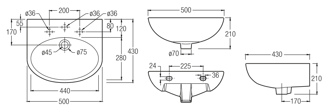 JOHNSON SUISSE BOSTON 500- WALL HUNG BASIN 500X430