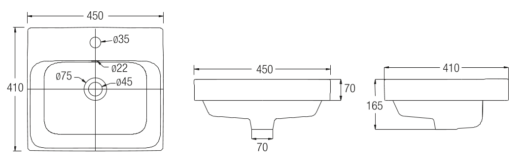 JOHNSON SUISSE GEMELLI RECTANGULAR- SEMI INSERT BASIN ONE CENTRE TAP HOLE 450X410