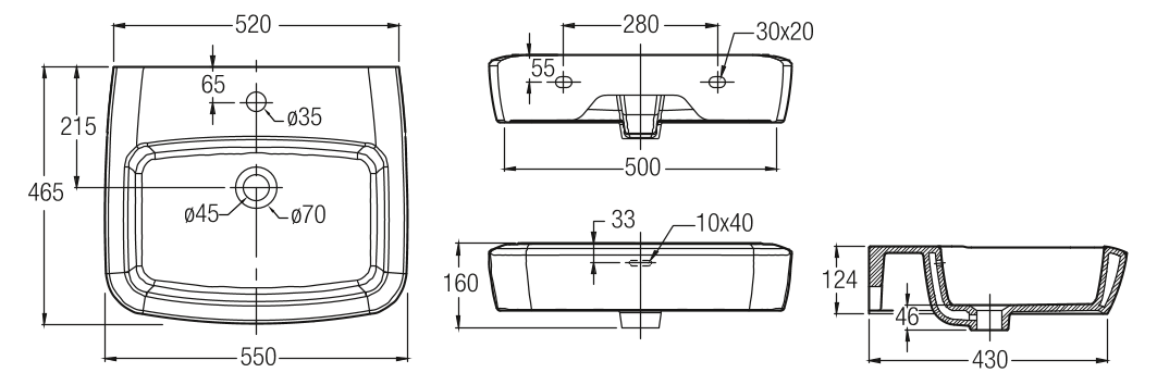 JOHNSON SUISSE LUCCA 550 – WALL HUNG BASIN 550X465