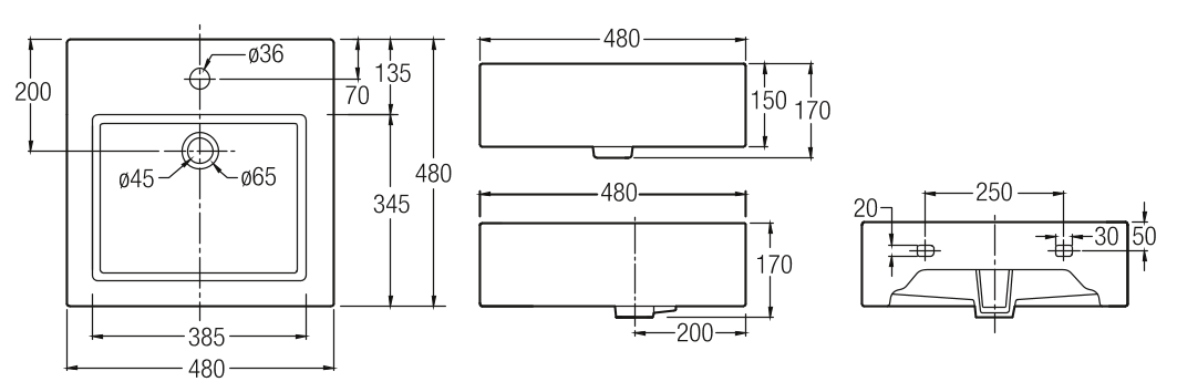 - Bowl width (mm):480