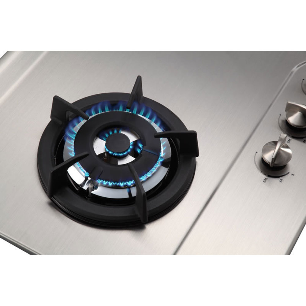 The double ring burner features simmer control for greater cooking versatility, offering a powerful wok-style flame to suit Asian cooking styles.